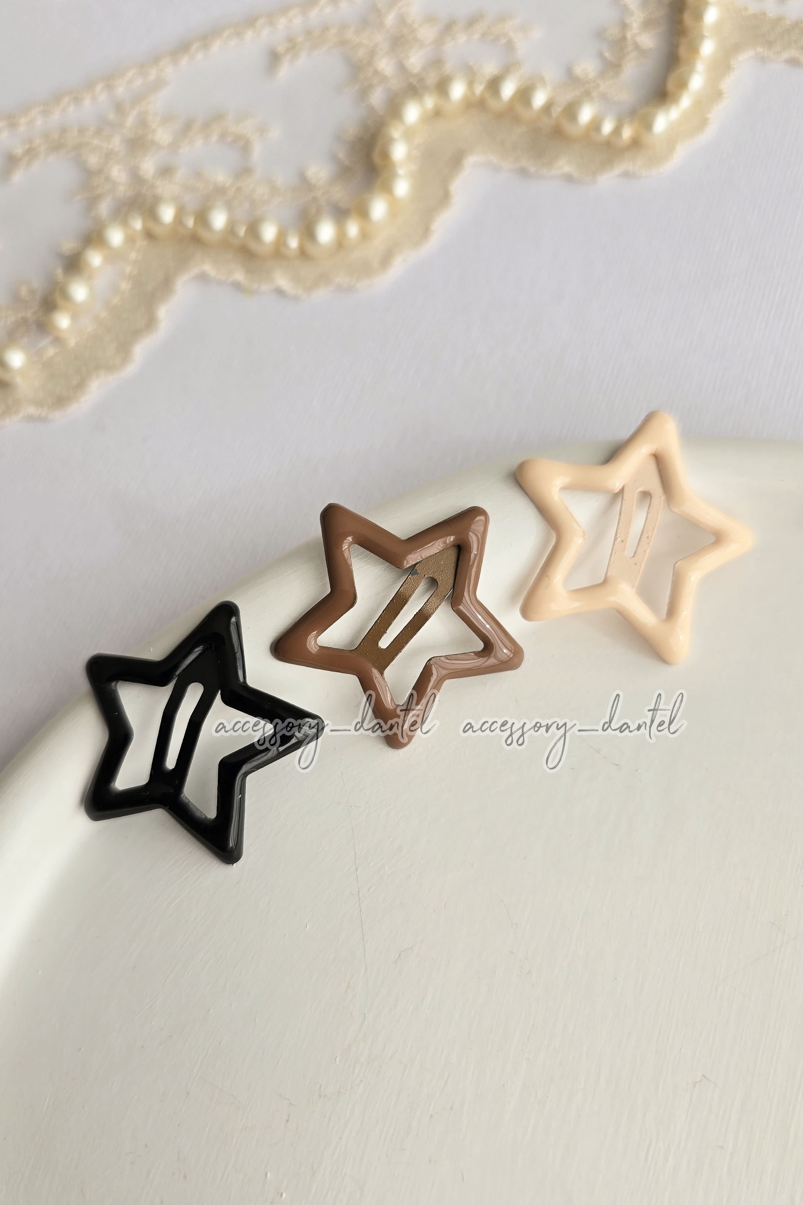 💝 هر پک ، شامل ۳ عدد گیره تق تقی ستاره مشکی، کرمی و قهوه ای میباشد.